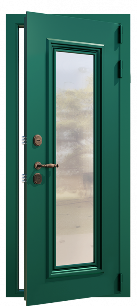 Трехкамерный бронированный стеклопакет, класса А3, 72 мм с тремя воздушными карманами и четырьмя стеклами ударопрочен, изолирует звуки и препятствует теплоотдаче. Светлый стеклопакет обеспечивает широкий обзор пространства за дверью и светопропускную способность. Классическая решетка в стеклопакете завершает стилистическую композицию данной модели. Оригинальным обрамлением входной двери послужит металлический карниз ручной работы, который придаст двери изысканный вид. Монтаж карниза предусмотрен при помощи стяжных болтов в наличник.