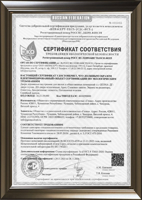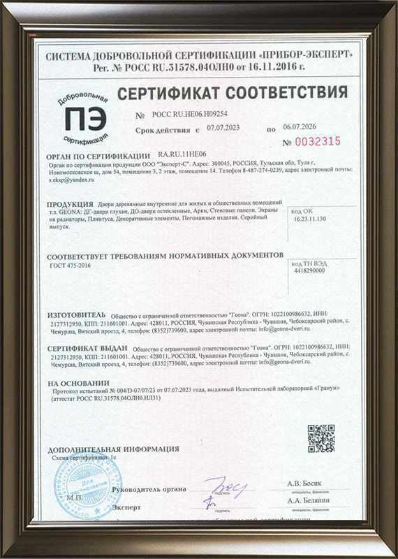 Сертификат соответствия по противопожарным межкомнатным дверям